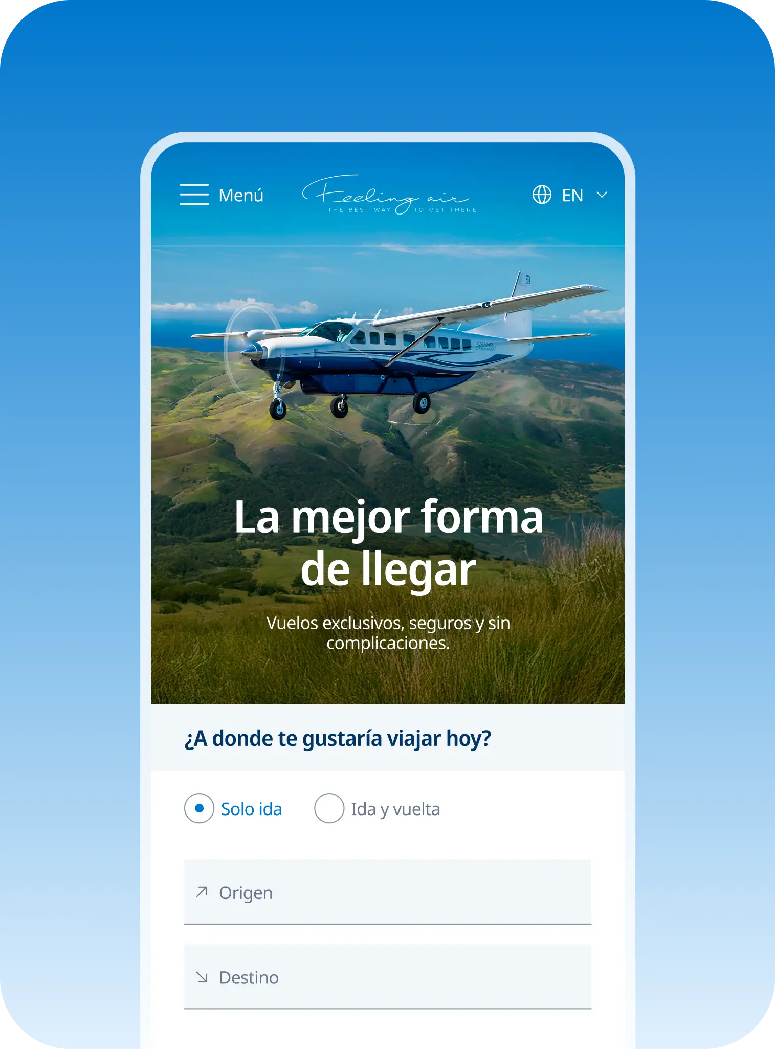 Feeling Air es un proveedor de servicios de aviación privada de primer nivel. Aunque su servicio y su flota estaban a la vanguardia, la experiencia digital no transmitía esa misma calidad. Mi rol fue diseñar la interfaz y la experiencia del sitio web para elevar la propuesta digital de la marca.
